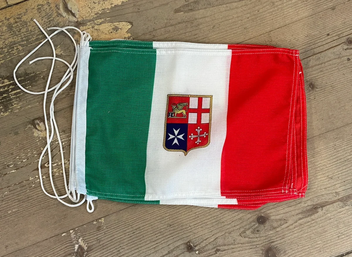 La bandiera della marina mercantile italiana rappresenta le navi mercantili italiane del governo italiano e dei privati, impegnate nel commercio e nel trasporto marittimo di merci (compreso trasporto passeggeri e cargo). Ogni imbarcazione civile italiana ha l’obbligo di issarla all’alba e ammainarla al tramonto.