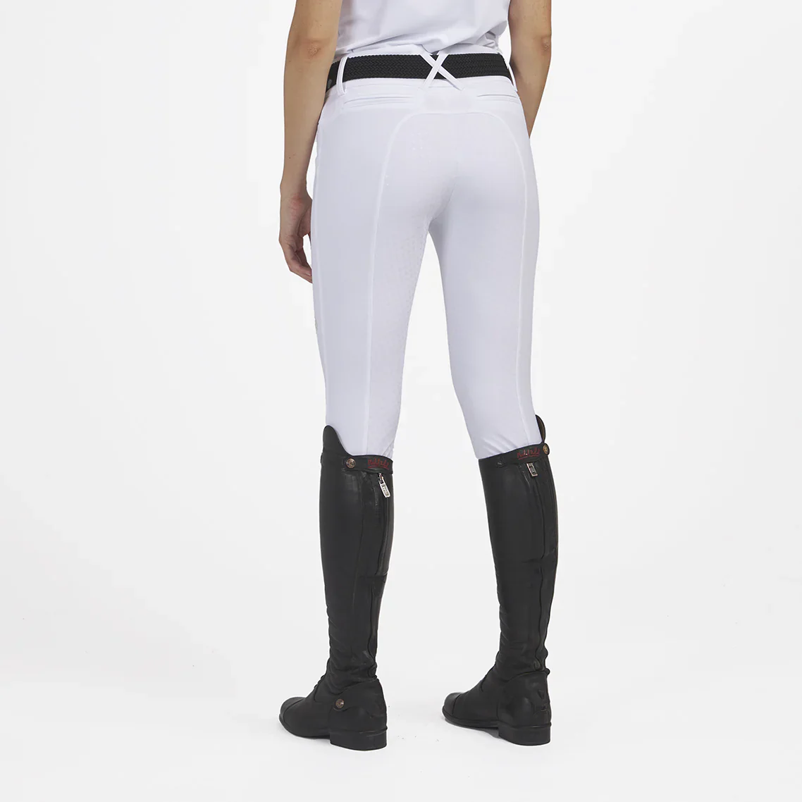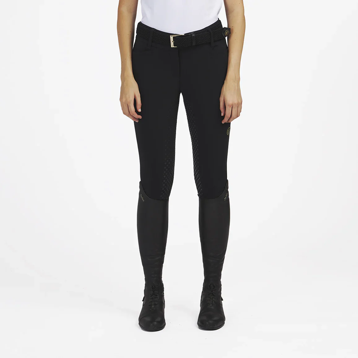 Pantalone a vita alta e confortevole, con due bottoni e full grip per garantire una maggior aderenza in sella. Il taglio ergonomico e il tessuto tecnico traspirabile assicurano una perfetta vestibilità ed elasticità nei movimenti. Tasche frontali. Un tocco di eleganza con il ricamato del logo in filo dorato.