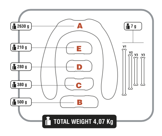 Venduto con un peso complessivo di 4Kg è possibile variare facilmente il peso. Si monta e smonta facilmente con delle semplici viti.