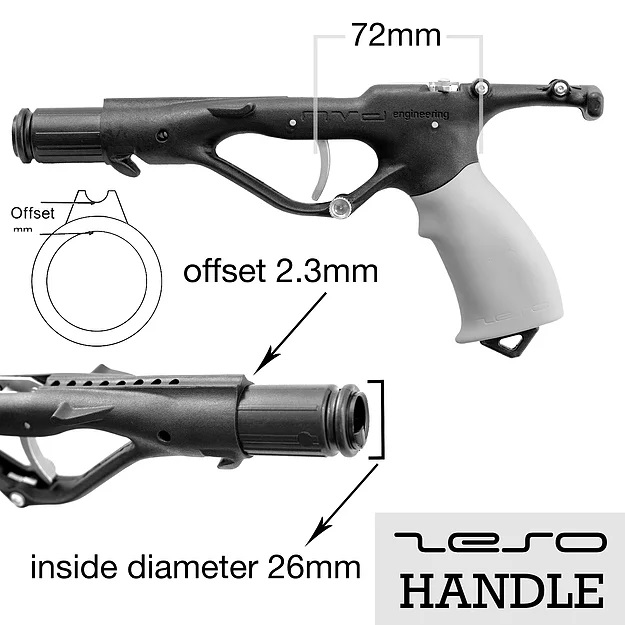 - Progettato per adattarsi a tutti i fucili subacquei convenzionali sul mercato con un tubo di 26 mm di diametro interno