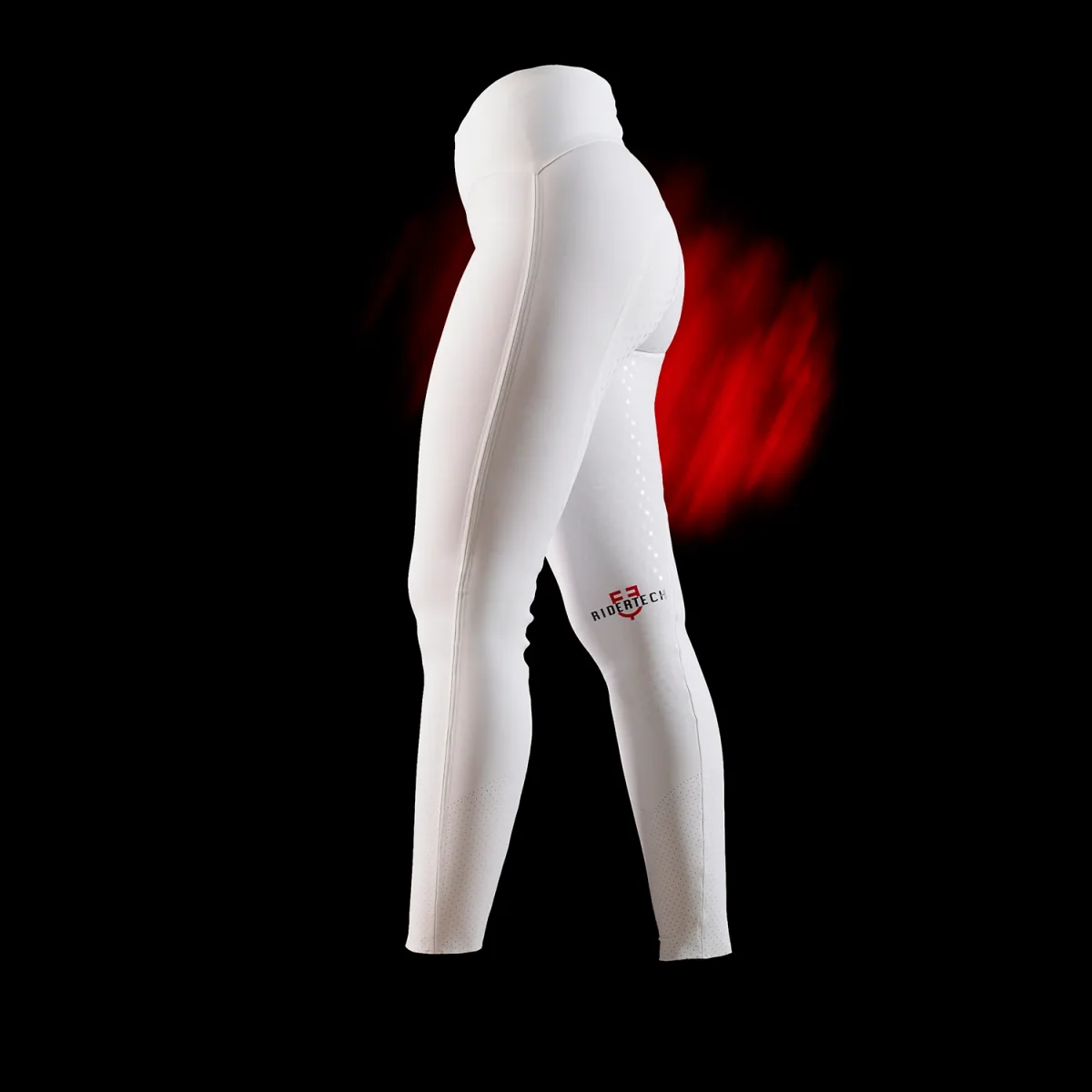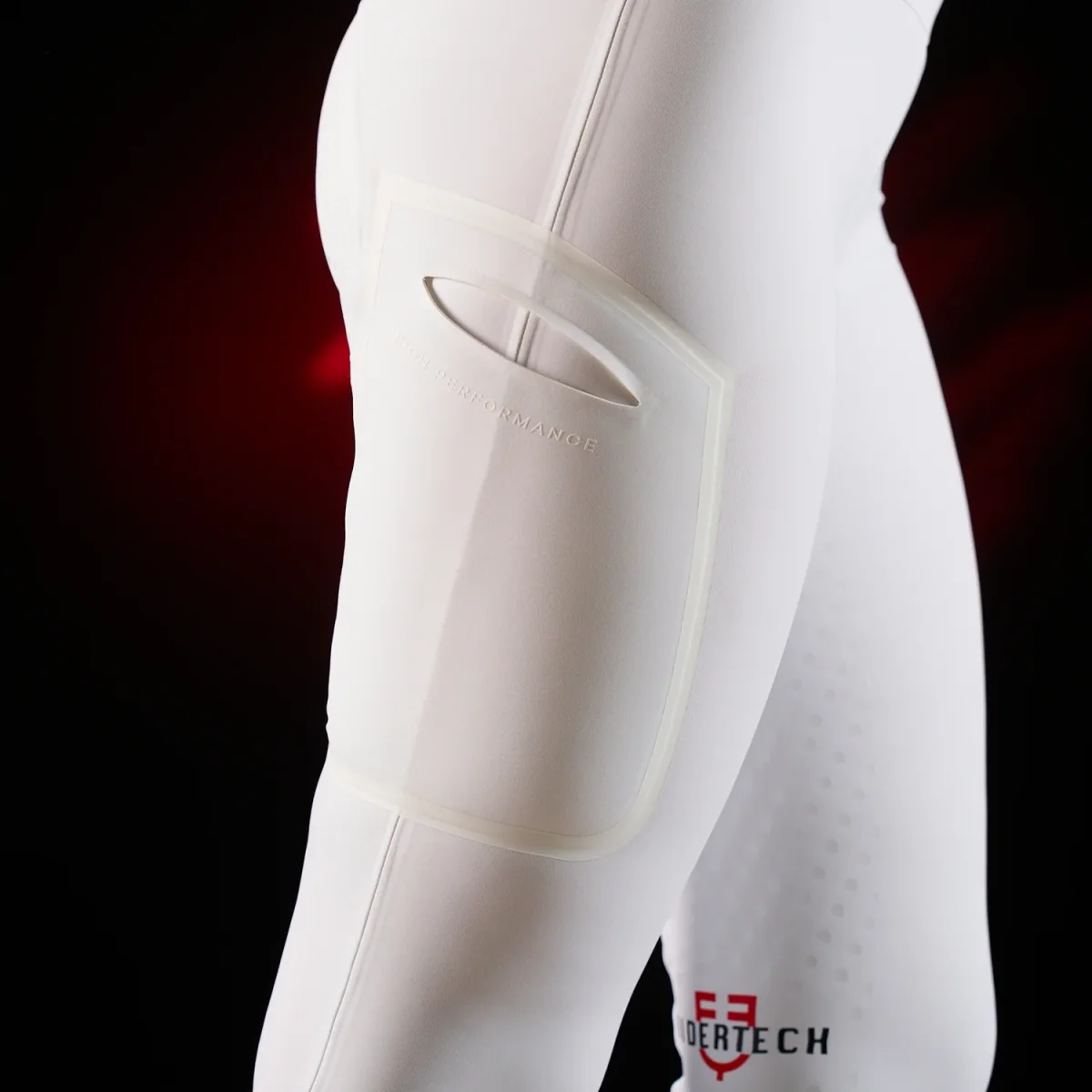 L’identità del brand è enfatizzata dalla presenza del logo Equestro e della scritta Ridertech, posizionati sia sul retro dell’elastico in vita che all’interno del ginocchio.