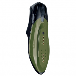 Per le 200 abbiamo concepito la pinna con la posizione della pala allineata sotto il metatarso e non oltre le dita dei piedi. Automaticamente il sub resterà dritto, allineato alla direzione di movimento e la sua falcata avanti ed indietro diverrà perfettamente equilibrata. Semplicemente abbiamo impedito nasca una resistenza dovuta alla postura.