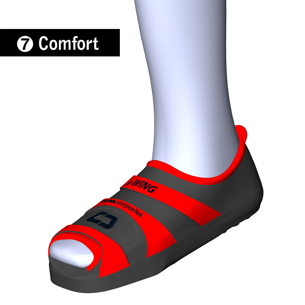 7) Comfort: La nuova scarpetta s-WiNG è stata progettata per massimizzare il comfort della calzata in maniera da avvolgere perfettamente il piede seguendone anatomicamente il profilo. Per questo scopo sono state realizzate ben 7 taglie dal 35 al 48.