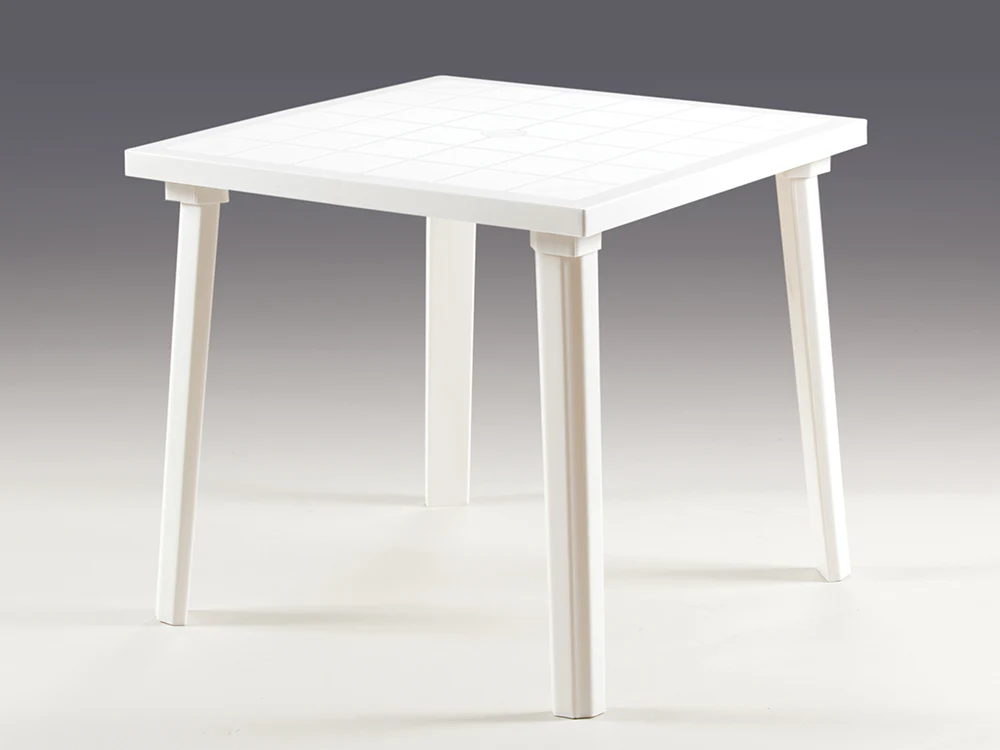 Tavolo 80×80 Quadrato in Polipropilene, Modello Weekend, Finitura Lucida, Disponibile nel Colore Bianco.